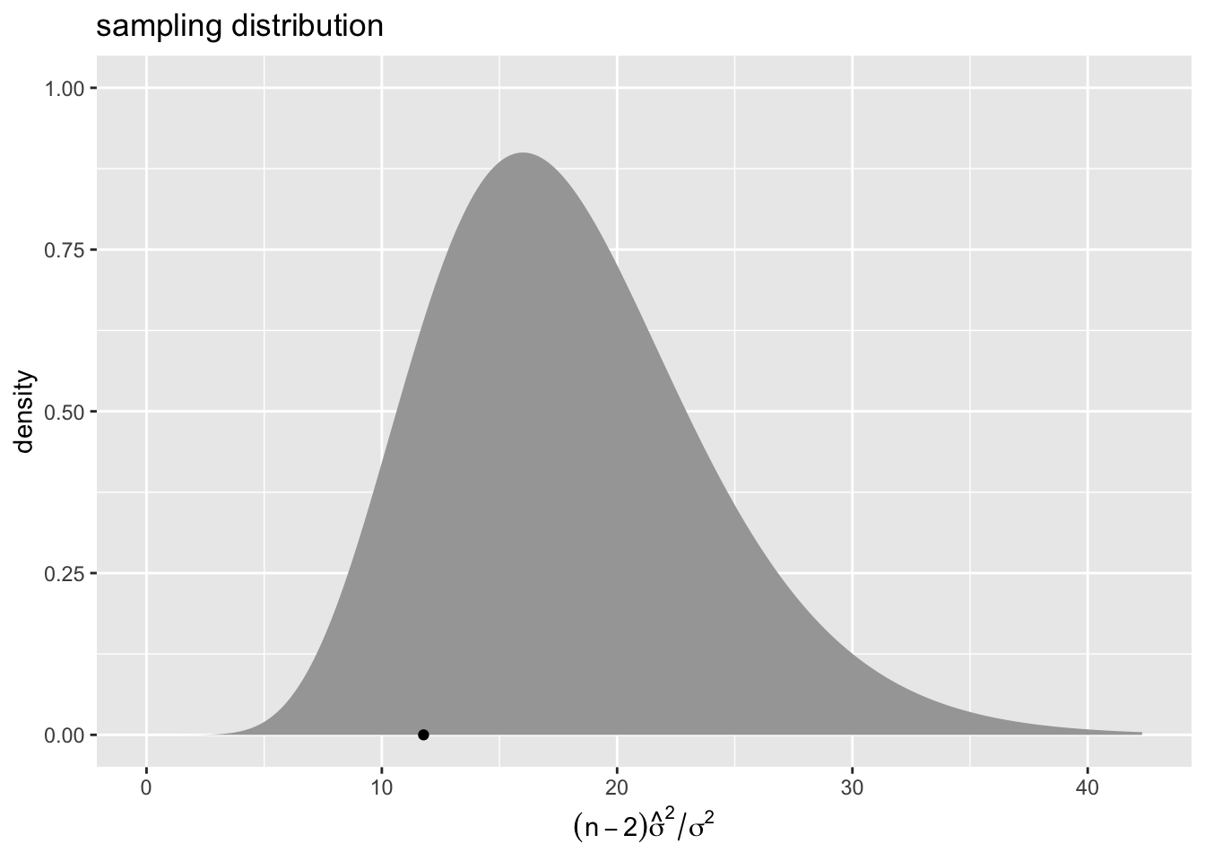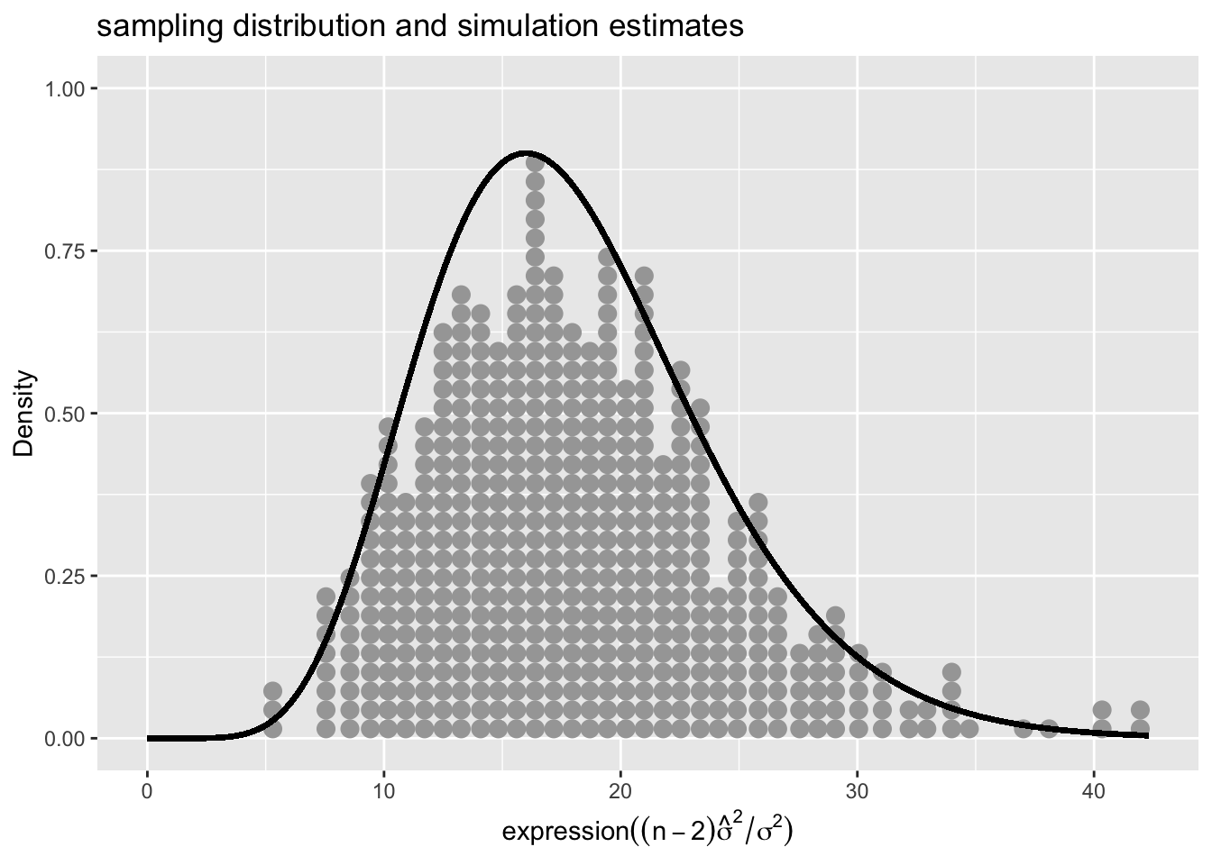\(n-2\) is the degrees of freedom and \(\sum_{i=1}^n e_i^2\) is called the residual sum of squares, denoted \(\mbox{SSE}\).