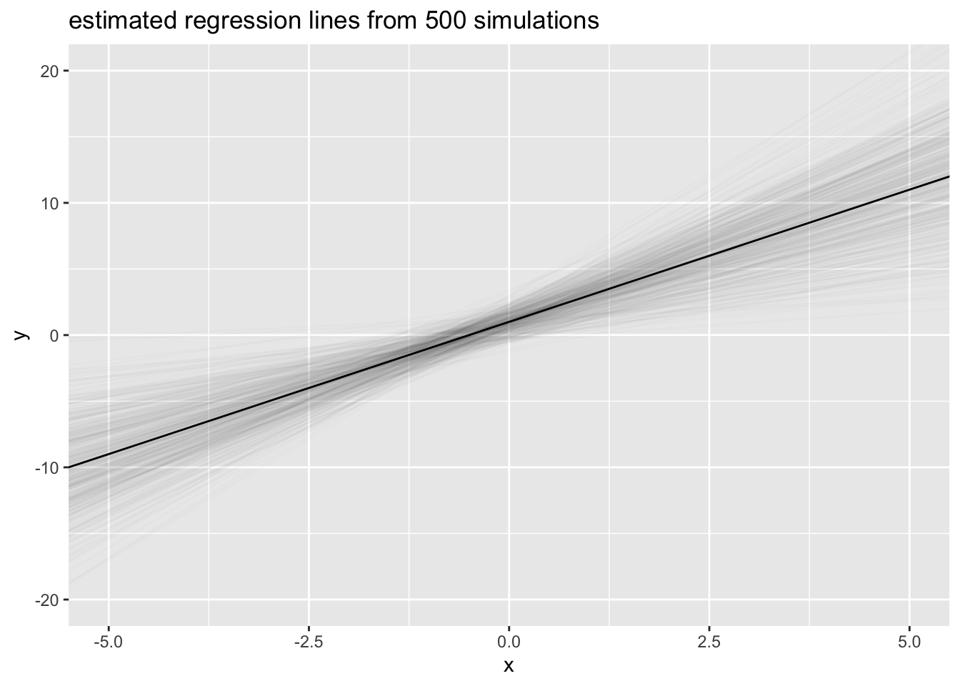 NOTE: if \(x_i\) are random then the model says that \(\mathbb{E}[y_{i}|x_i] = \beta_0 + \beta_1x_i\) and Var(\(y_{i}|x_i\)) = \(\sigma^2\).