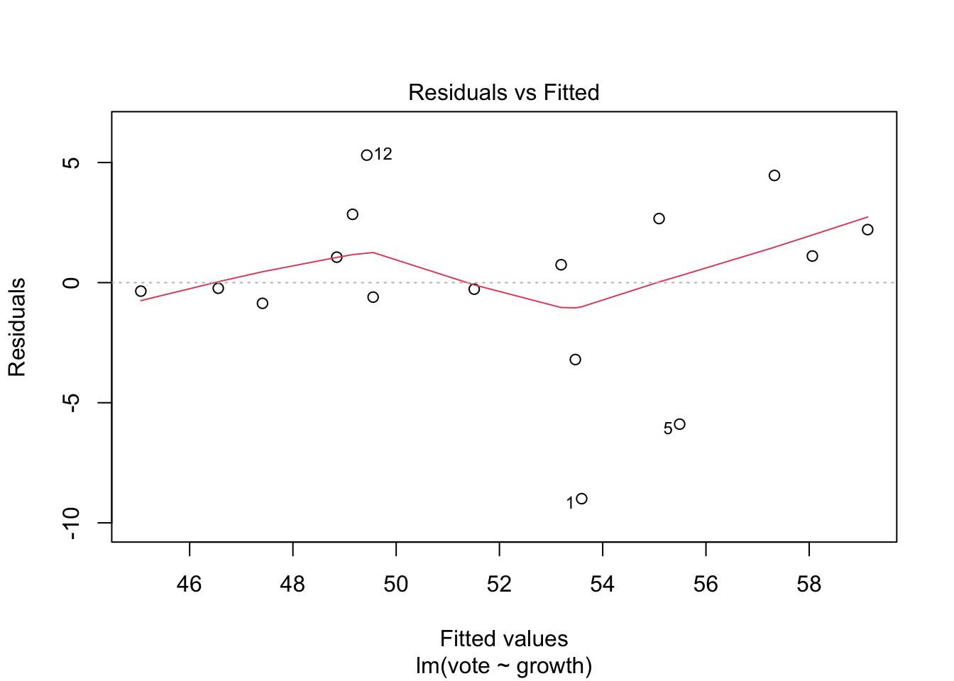 Plot 1: no linear pattern, but some hint of non-constant variance.