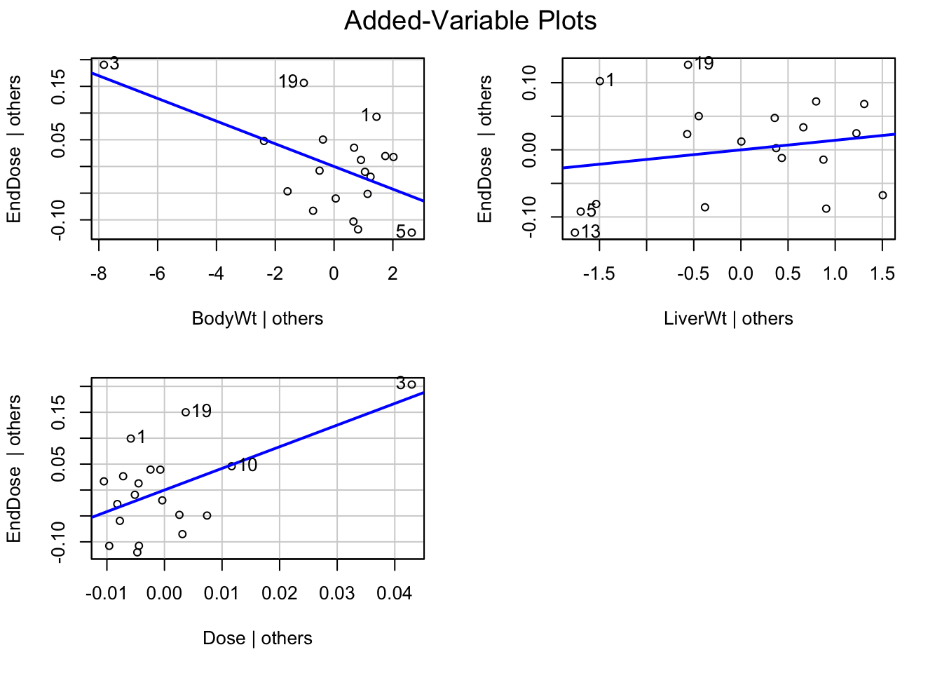 ## lm(formula = EndDose ~ BodyWt + LiverWt + Dose, data = rats.data[-3,